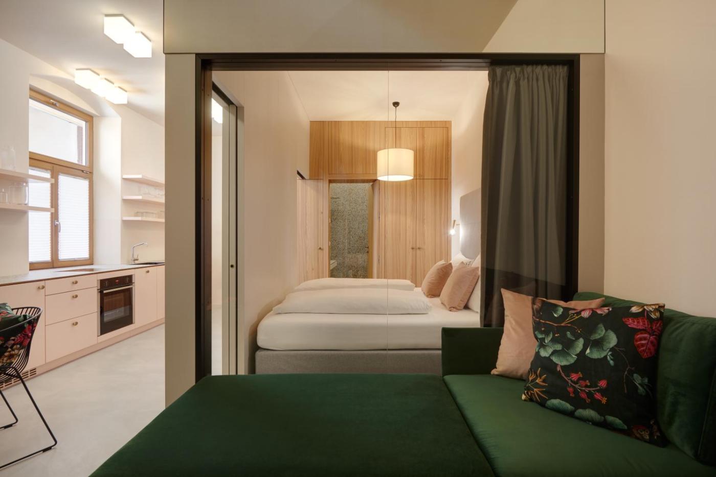 One-Bedroom Apartment. Featuring a private entrance, this air-conditioned apartment is comprised of 1 living room, 1 separate bedroom and 1 bathroom with a bath and a shower. Meals can be prepared in the kitchen, which comes with a refrigerator, a dishwasher, an oven and a microwave. This apartment features a washing machine, soundproof walls, flat-screen TV with streaming services, as well as winechampagne for guests. The unit offers 2 beds. ;