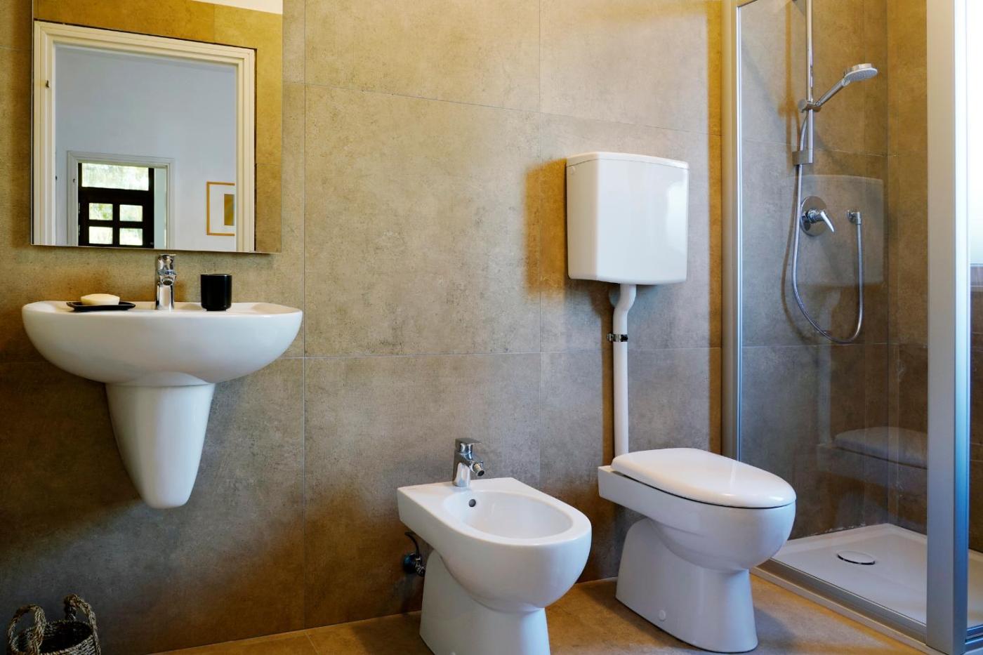 Double Room with Extra Bed. In the kitchen, guests will find a stovetop, a refrigerator, a dishwasher and kitchenware. The spacious double room offers a private entrance, a tea and coffee maker, a terrace with garden views as well as a private bathroom boasting a walk-in shower. The unit has 2 beds. ;