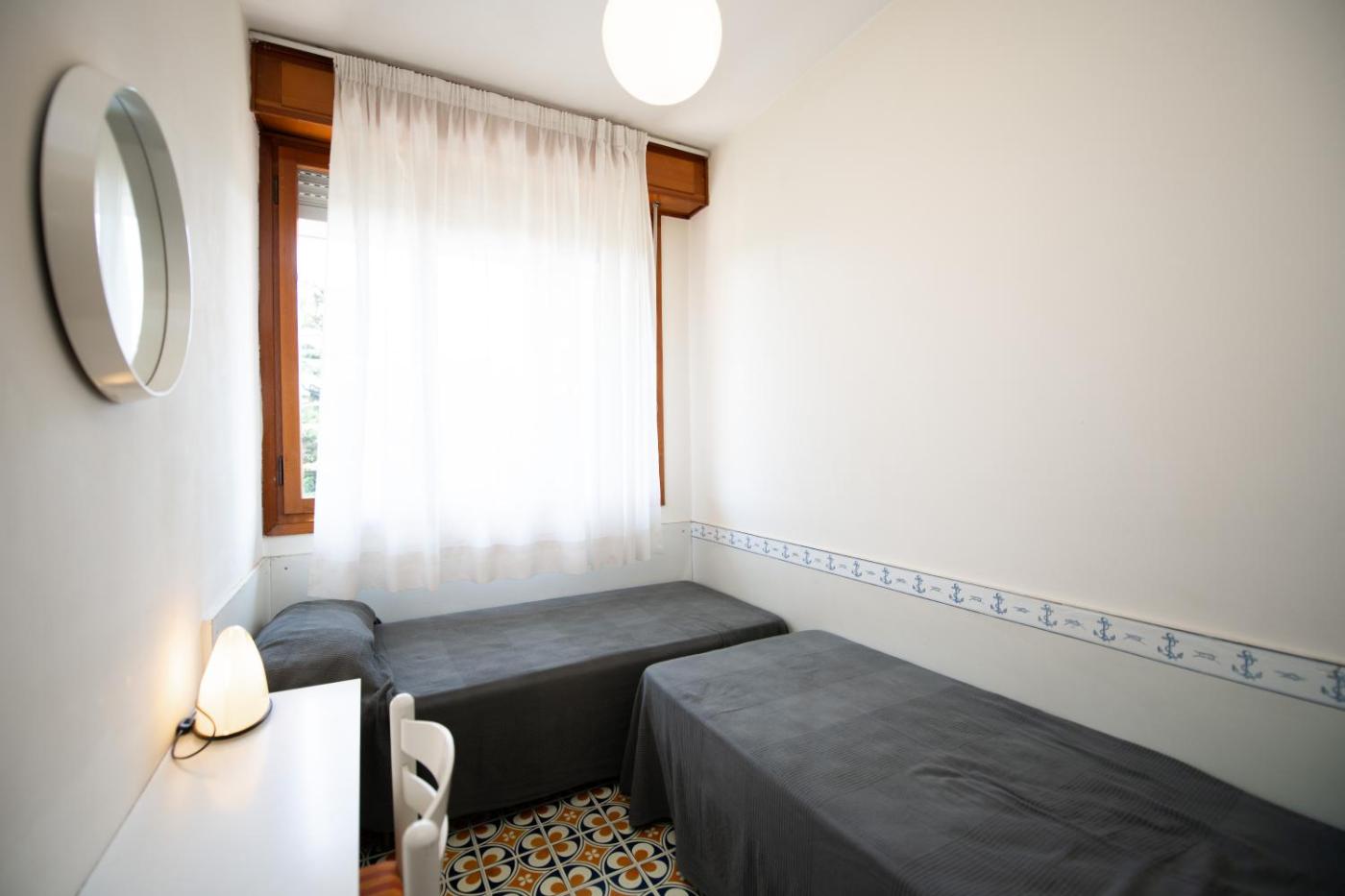 Two-Bedroom Apartment. This air-conditioned apartment comes with 1 living room, 2 separate bedrooms and 1 bathroom with a shower. Guests can make meals in the kitchenette that features a stovetop, a refrigerator, kitchenware and an oven. Boasting a balcony with garden views, this apartment also features a coffee machine and a flat-screen TV. The unit has 4 beds. ;