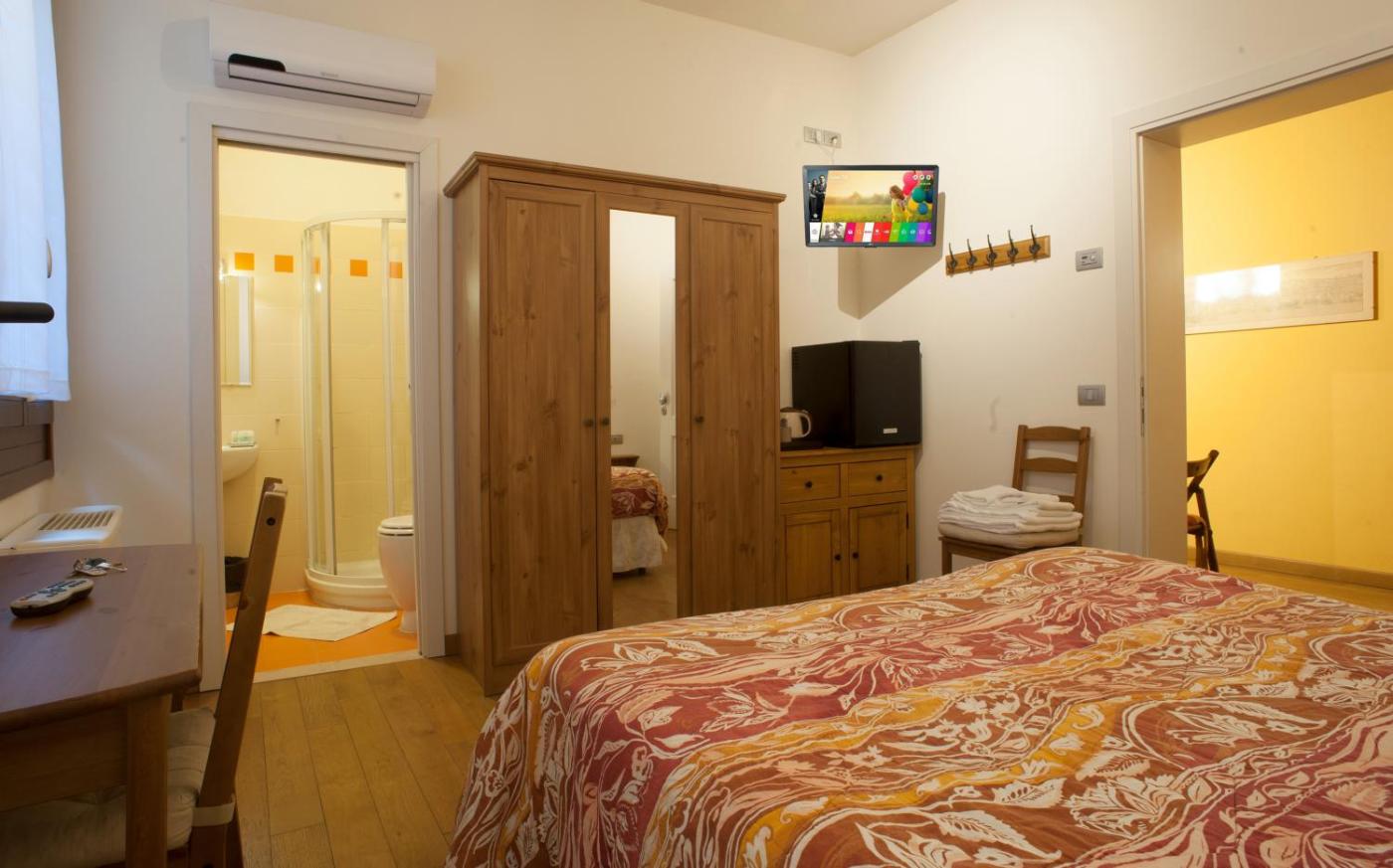 Double Room with Private Bathroom. Featuring free toiletries, this double room includes a private bathroom with a shower, a bidet and a hairdryer. The air-conditioned double room features a flat-screen TV with streaming services, a tea and coffee maker, a wardrobe, parquet floors as well as city views. The unit has 1 bed. ;