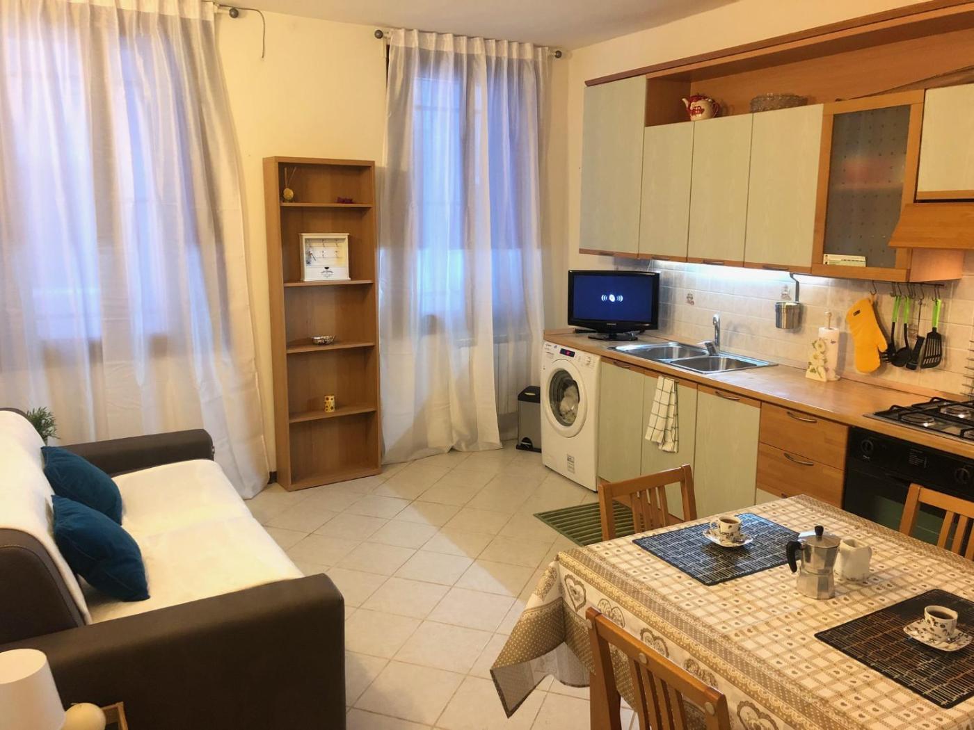 The apartment has 2 bedrooms, a kitchen with a dining area, and 1 bathroom. A flat-screen TV is available.