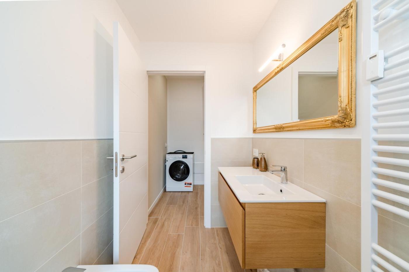 One-Bedroom Apartment. The air-conditioned apartment features 1 bedroom and 1 bathroom with a walk-in shower and a bath or a shower. Meals can be prepared in the well-fitted kitchen, which comes with a stovetop, a refrigerator and a microwave. Featuring a balcony, this apartment also offers a washing machine, soundproof walls and a flat-screen TV. The unit offers 1 bed.
